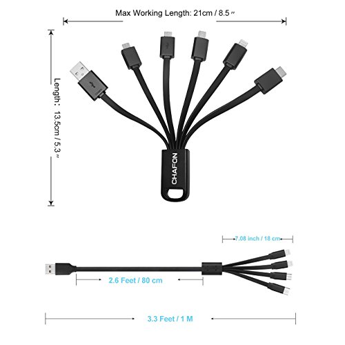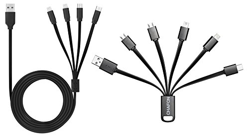 Multi USB Cable 2 Pack ,Chafon 4 in 1 and 6 in 1 USB Charger Cable with Micro USB/USB C/Mini USB/8 Pin Lightning Connectors for iPhone,iPad,Android Smartphone and Most Tablets-Black