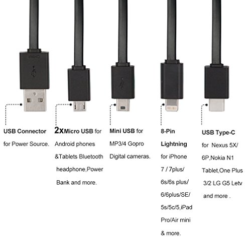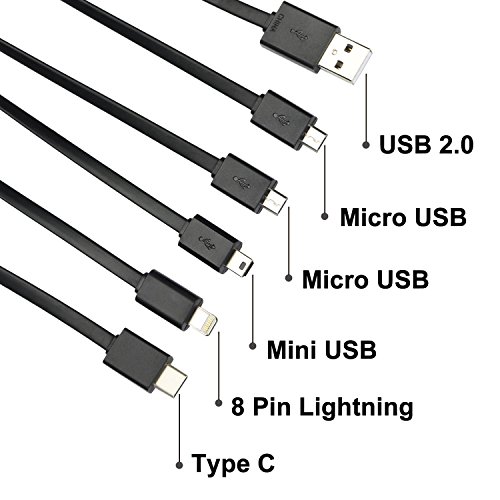 ★★6 in 1 USB Charging Cable:Including 1xUSB C,1x8-pin Lightning,2xMicro USB,1xMini USB,1xUSB 2.0.[USB 2.0 is the only power supply input port]