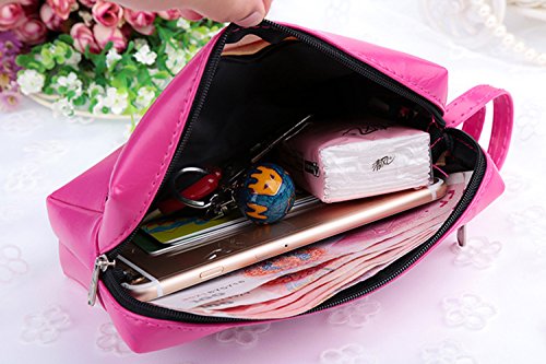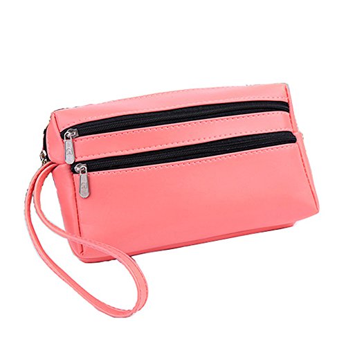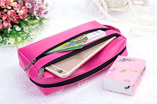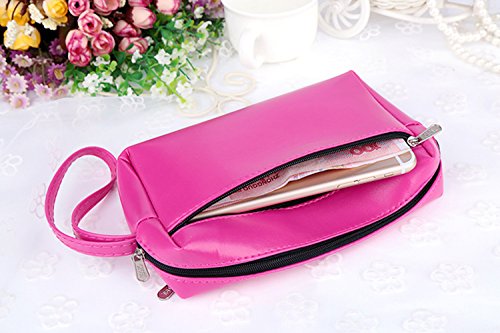Materials:made from good quality PU leather. Approx Dimension::L x W x H : 6.77" x 5.23" x 0.78" (17.2cm x 13.3cm x 2cm) weight: 63g, It is light weight,very easy to carry. This bag provides enough capacity for daily carryings including cell phones,cash,credit cards,small cosmetics and other staffs. Zipper closure, protect your cards, cash, phone, bills etc safety. 0