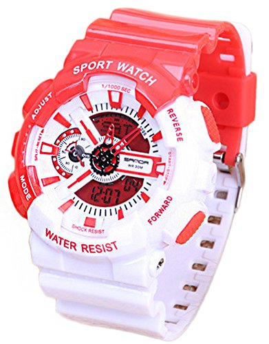 -. Title : Multi-Function Fashionable Outdoor Waterproof Sport Kids Watch For Boys Girls Wrist Watches Red+White