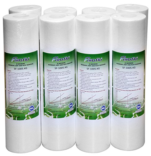 -. Binding : Kitchen -. Brand : General Water Solution -. Color : White -. EAN : 0714983671552 -. Feature : 12 ea 1st Stage: 5 micron 10-inch high-capacity polypropylene filter blocks sediment, sand, dust, particles, and rust. Lasts 6 - 12 months depending on water quality -. IsAutographed : 0 -. Label : General Water Solution -. Manufacturer : General Water Solution -. ProductGroup : Home -. ProductTypeName : HOME -. Publisher : General Water Solution -. Studio : General Water Solution -. Title : Puroflo Compatible Watts/ iSpring/ Apec 5 Micron Sediment Water Filter Cartridge 8 Pack -. UPC : 714983671552