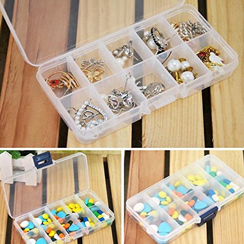 -. Feature : Quality Guarantee:High quality Adjustable Jewelry Organizer, if you are not 100% satisfied with the purchase for any reason, don't hesitate to contact us to request a refund or replacement. Kinsky offers 100% SATISFACTION or 30 DAYS MONEY BACK guarantee Or exchange! / It can be used to store earrings, bead, finger ring or other small jewelry, also is used for storing fishing hook, fish lure bait or other small tool kit. / 10 GRIDS--The plastic storage case can be divided for 36 grids at most with adjustable dividers. Each grid dimension is 5.1" x 2.9" x 0.9". The 10 grids clear hard plastic storage box organizer is simple and practical." parts organizer boxes"" storage container" / It's very handy for keeping your small bits and bobs for use in DIY or even fishing! / Removable dividers: The grid inside the box can be moved, so you can adjust the dividers to create your own size compartments.