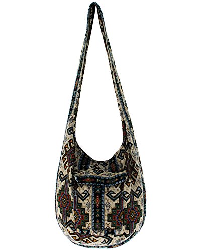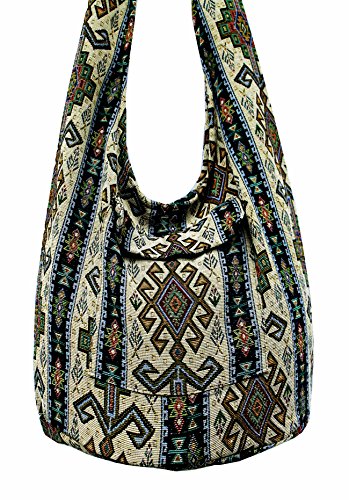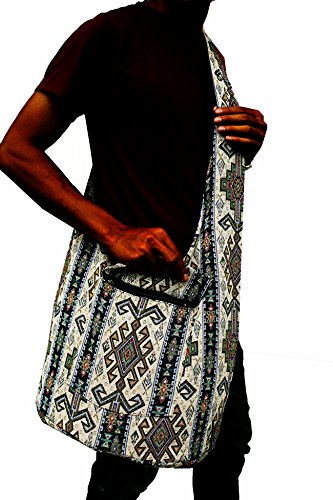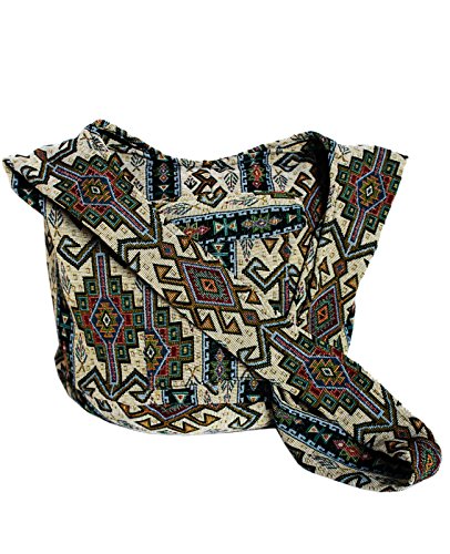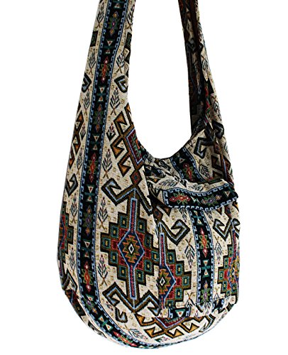 8 AM. Thai Tribal Hmong Boho Striped Ethnic Cotton Boho Sling Crossbody Bag Shoulder Bag Thai Pattern Bag Thai Top Zip Handmade Asia Bag(Stripe Green)