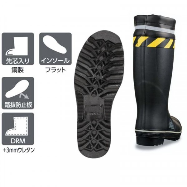 踏抜防止板・鋼製先芯入りで足をしっかり保護します。クッション性にも優れ、オールシーズン使える長靴です。