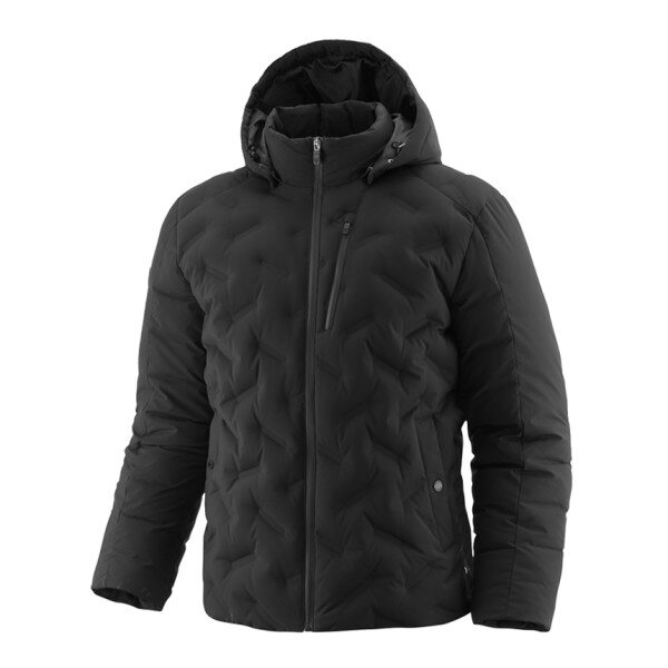 남성 다운 자켓 입니다 스트레치 소재에 웰딩기법의 변형 퀼팅과 방수지퍼 포인트로 스포티한 느낌의 중량 하이브리드 다운자켓입니다