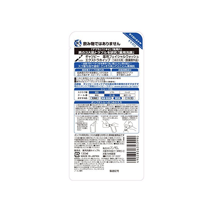 원본상품명: GATSBY(ギャツビ?) ?用フェイシャルウォッシュ エクストラホイップ つめかえ用 130mL (??部外品)