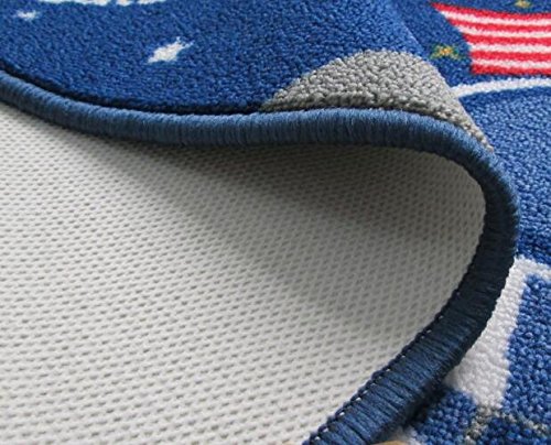 -. Title : Blue Solar System Kids Area Rug Educational Learning Carpet Fun Rug Children Area Rug for Playroom & Nursery - Non Skid Gel Backing