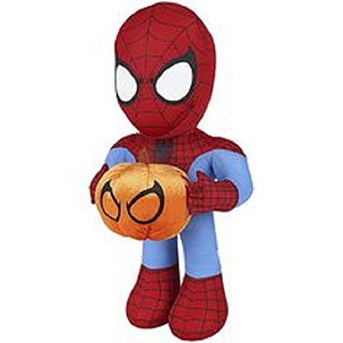 -. Feature : Large Plush SPIDERMAN ~ Stands 21 inches tall / Greet your Halloween guests with Spiderman Holding an Orange Pumpkin / Use year after year / Cute indoor Halloween décor Produced in 2015