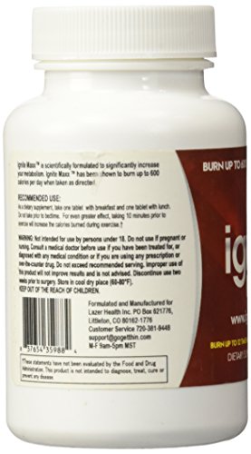 -. Binding : Health and Beauty -. Brand : Core Health Innovations -. EAN : 0837654359884 -. Feature : Increase Metabolism / Burn up to 600 calories per day / Burn up to 12 times more calories during exercise / Safe and natural, lose weight and inches / 60 tablets per bottle -. IsAdultProduct : 0 -. Label : Core Health InnovationsTM -. Manufacturer : Core Health InnovationsTM -. MPN : 837654359884 -. PackageQuantity : 1 -. PartNumber : 837654359884 -. ProductGroup : Health and Beauty -. ProductTypeName : HEALTH_PERSONAL_CARE -. Publisher : Core Health InnovationsTM -. Studio : Core Health InnovationsTM -. Title : Ignite Maxx -. UPC : 837654359884