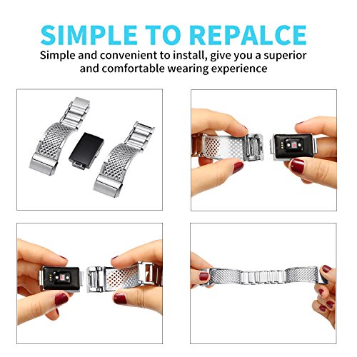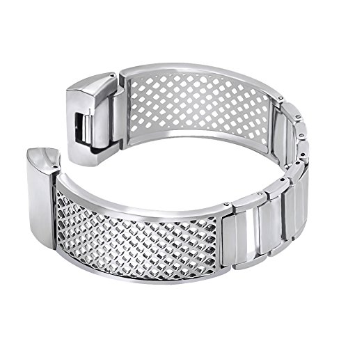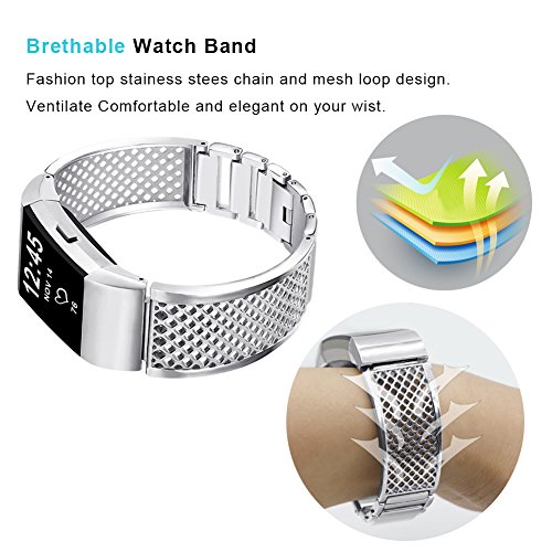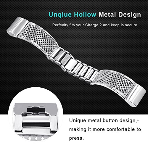 TENGL Fitbit Charge 2 Bands Bangle Metal Accessory Replacement Pierced Breathable Bracelet with Tools Adjustable Length- Durable Closing Clasp Wristbands for Fitbit Charge 2