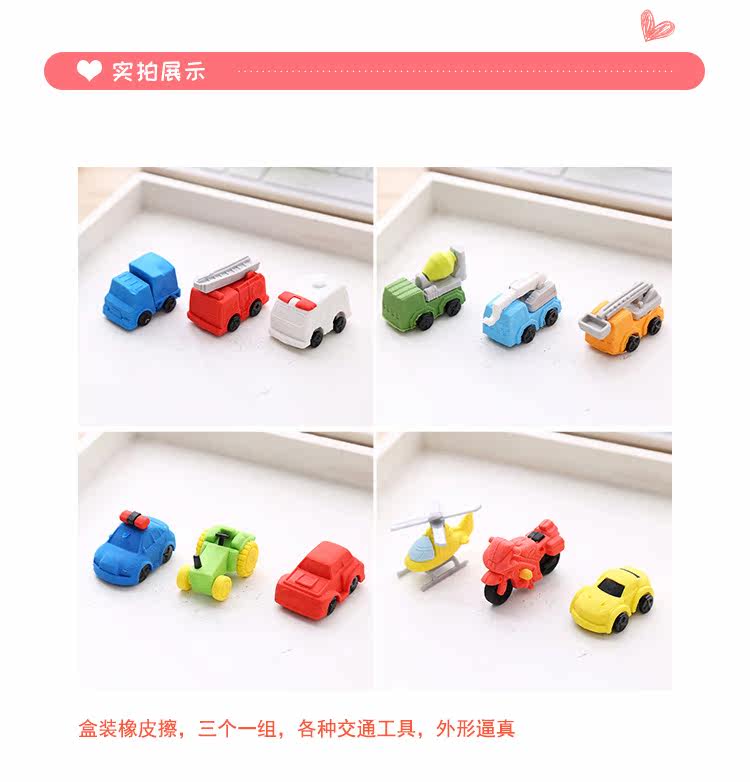 橡皮擦儿童卡通创意可爱汽车造型学习擦学生文具用品幼儿园奖品