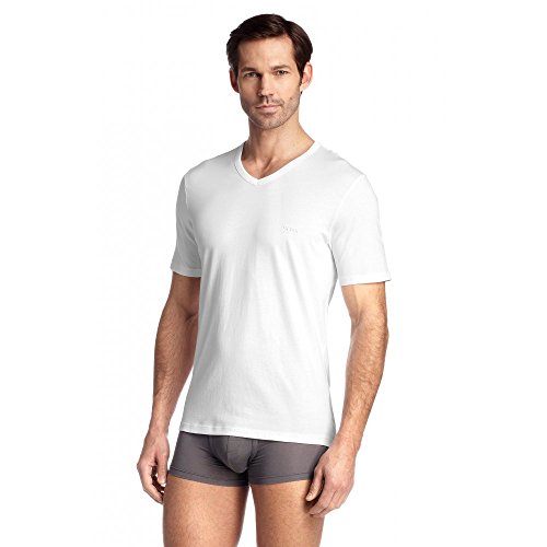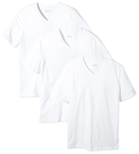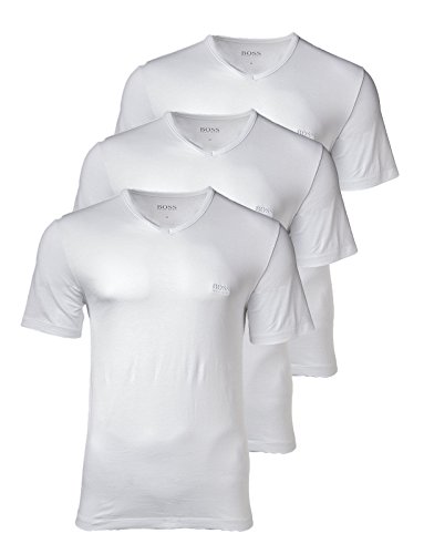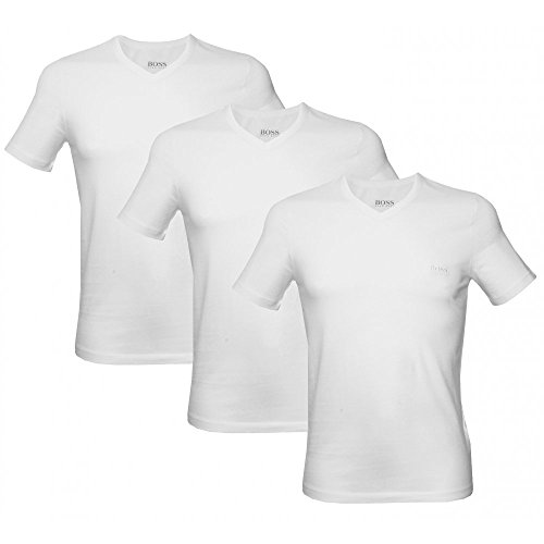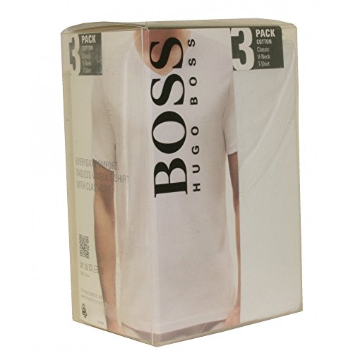 Product DescriptionHugo Boss V-neck T-Shirt. Great Value 3 Pack. Available in White or Black. Signature Hugo Boss logo on chest. Available in sizes S - 2XL. 100% Cotton.0