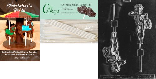 Cybrtrayd 'Chorus Girl Lolly' Adult Chocolate Candy Mold with 25 4.5-Inch Lollipop Sticks and Chocolatier's Guide