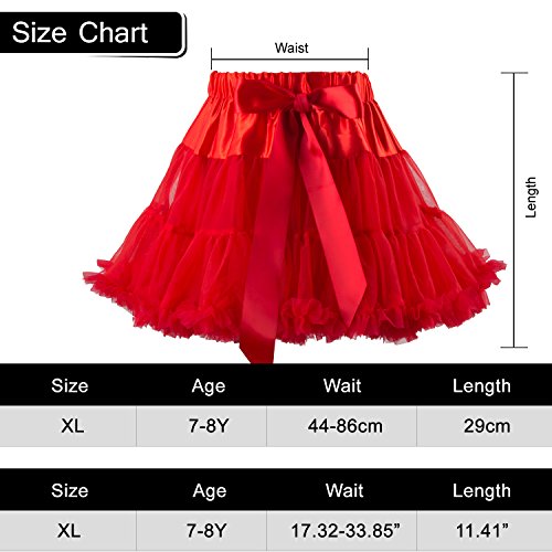 ONE SIZE FIT MOST GIRLS- To ensure you get the best fit for your child, our tutus are 11.4''in length, with a 17'' relaxed waistline and can stretch up to 38''.Worried that your pretty princess might grow out of her cute glitter tutu? This fun colorful skirt would be a good choice.