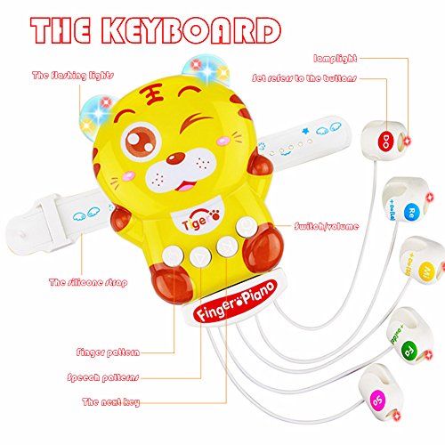 Have you seen the piano on hand?This is a magical finger piano toy!Glove finger function play music function, so much activity and fun for little toddler anytime, anywhere!! Multiple functions music mode,Lovely cartoon styles,Colorful appearance,Beautiful music,Bright lighting,Funny Hamster.To Help & Improve Children's Visual and Hearing Skills.It can help activate a variety of neural pathways that are very important in the development and mastery of many life skills, including creativity, spatial intelligence, memory, language, mathematics, and emotional intelligence.Besides,this process of hitting keyboards can stimulate baby's musical potential and foster its early musical knowledge!