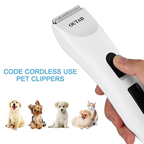 Pet Grooming Electric Clipper OUTAD Low Noise Rechargeable Cordless Pet Dogs and Cats Electric Clippers Grooming Trimming Set with Comb Guides, Pet Grooming Kit