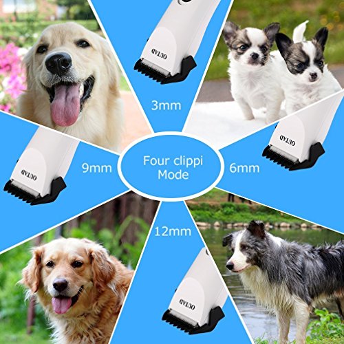 - 4 GUIDE COMBS AND CORDLESS: 3mm/6mm/9mm/12mm attachment combs offered for hair length. Rechargeable and cordless pet dog clippers can support two working mode: Cordless working or working with Charging, which provide much convenience