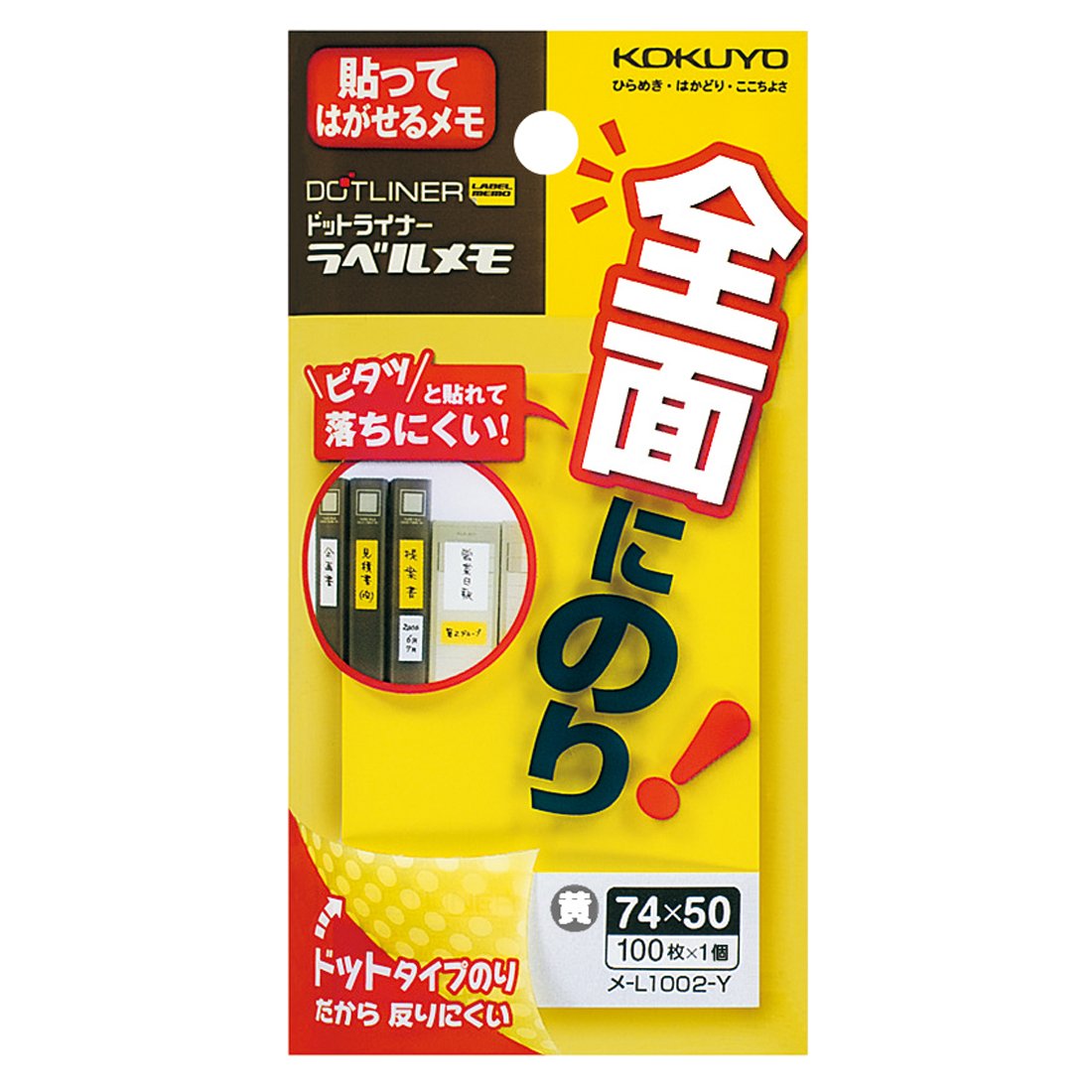 Kokuyo adhesive memo dot liner label memo 74x50mm 100 sheets yellow main -L1002-Y