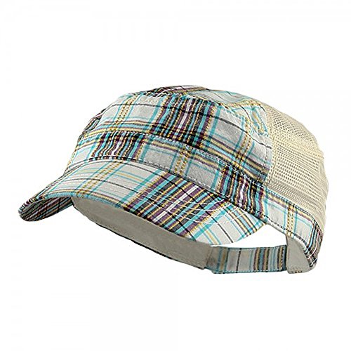 (Mega Cap)/Accessories/Hats/DIRECT FROM USA/Mega Cap Women's White Plaid Cadet Mesh Back Trucker Cap