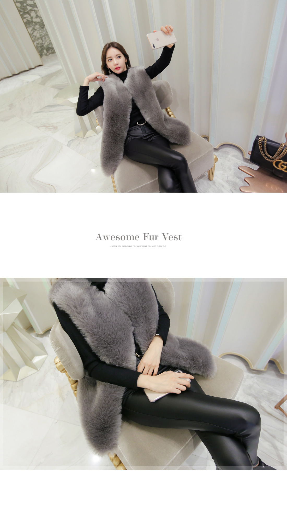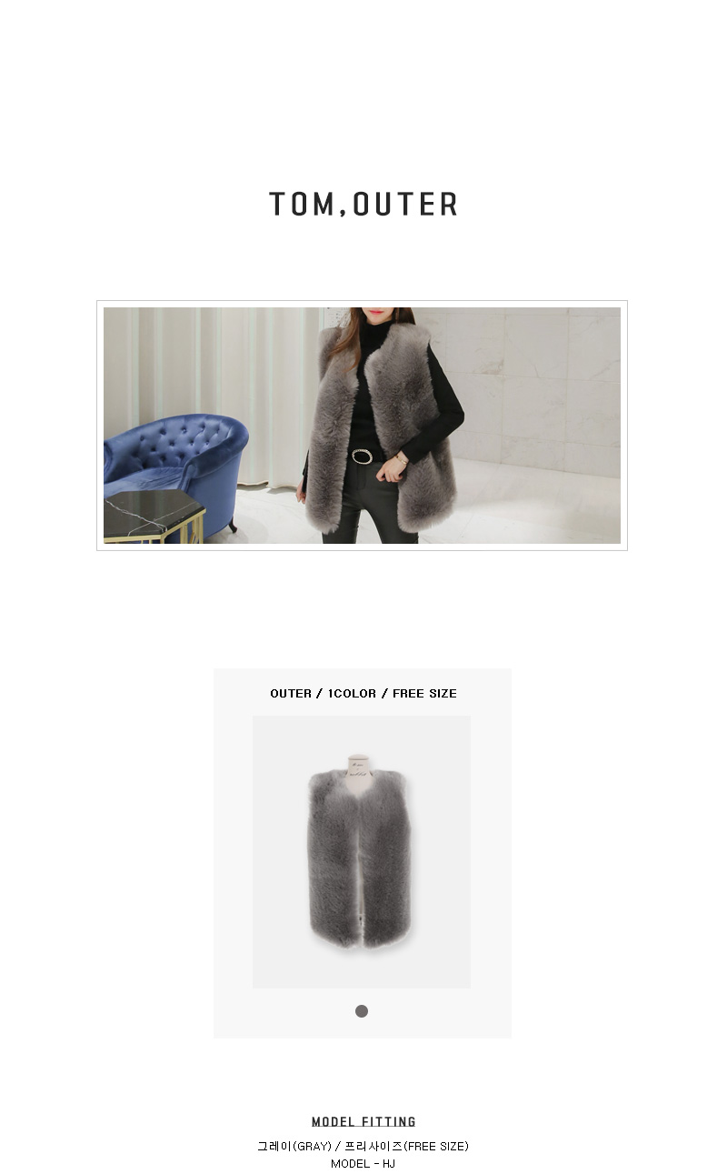 여성스러운 분위기의 어썸 퍼 베스트 소개 해 드려요.부드러운 터칭감으로 페이크 퍼이지만 리얼퍼 못지않는 퀼리티를 가졌어요!가벼운 소재감으로 툭-걸치기 좋아구요,은은한 그레이톤으로 고급스러워 보이는 컬러라 받아보시면 더욱 만족하실꺼에요^^ 여유있는 핏감과 기장감으로 편안하게 입기좋구요,체형커버의 효과도 덤으로 가져가실 수 있으며밋밋함을 덜어 줄 뿐만 아니라 룩의 퀄리티를 UP! 시켜 주었어요.힙을 살짝 덮는 기장감으로 모델처럼 팬츠 하나만 매칭해 주셔도높은 완성도의 포인트 룩을 연출해 주는 아이로 추천 해 드릴게요.그레이 한가지 컬러 준비 했으며,니트탑이나 기본티셔츠와도 잘어울려드리구요,자켓위에 코디해서 연출해주셔도 좋아요~