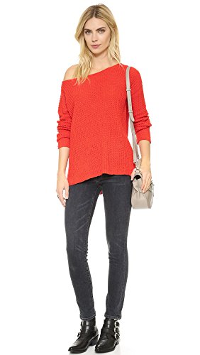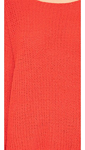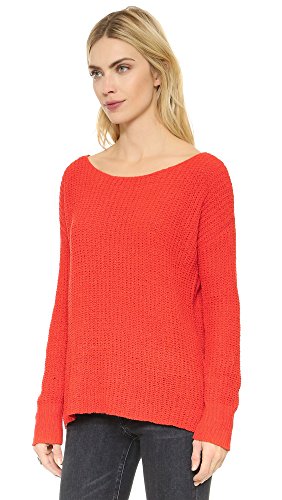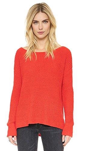 A cozy BB Dakota sweater made from plush chenille. Slits relax the uneven hem. Boat neckline. Long sleeves. Semi-sheer.