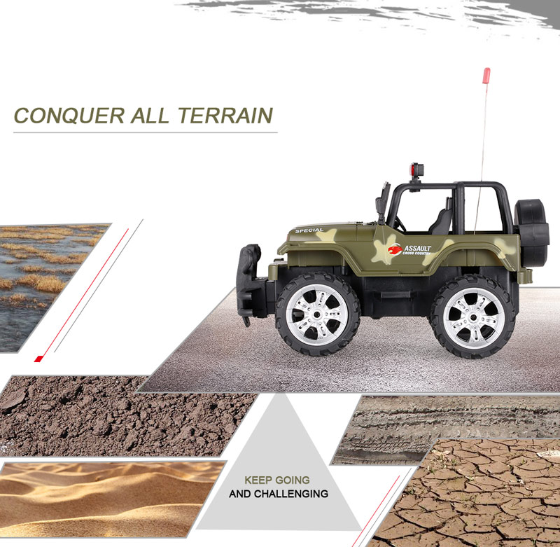 This 1/20 remote control off-road car is easy to control. It is equipped with forward, backward, turn left, turn right and bright light functions. Let you experience different feelings, have more fun! A great gift for kids!