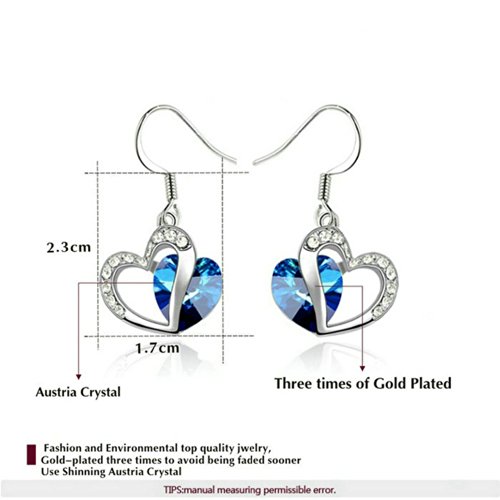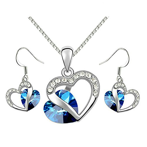 -. Feature : This set will be a good gift. Shipped out in an exquisite jewelry gift box which can be used as a gift directly. Need no other packing. / Classic heart of the ocean earrings and necklace jewelry set. Heart shaped pendant, sapphire accents and Austrian crystals decorated on the pendant. It expresses eternity love. / It's an excellent gift for anniversaries, graduations, birthdays, or just as a surP.R.Ise to remind that special someone how much you care. / The necklace chain is 15.7'' long with an 1.95'' extended line which is convenient for you to adjust the length. The necklace pendant is 0.8''*0.6'', the earring size is 0.9''*0.6''. / Delivery time is about 3-7 days by Amazon fulfillment Center.One year warranty to ensure you a perfect shopping experience.