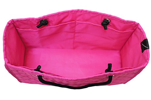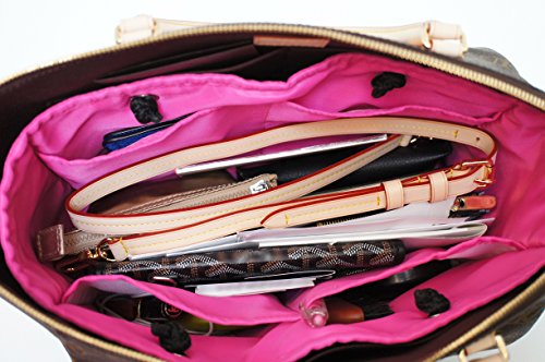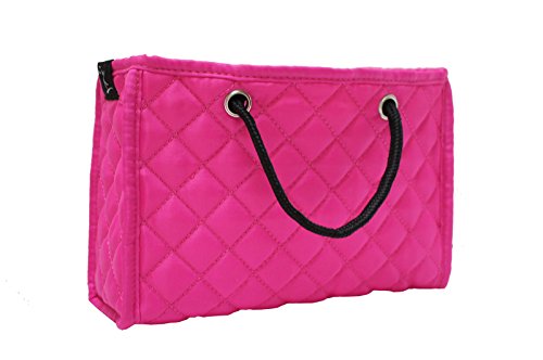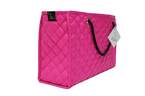 Product Description Protect and organize your handbags with our chic custom designed quilted handbag organizer inserts. Handbags and accessories have long been our passion and we designed these inserts keeping in mind that being organized should not mean giving up on style! Our ZOE inserts will keep your bag organized, protected from make-up spills and other mishaps, all while still having the look and feel of a quality product you will love placing inside your bags. Soft quilted mini tote, with handles to allow for quick transfer from one bag to another, 4 deep pockets to help organize, plus one large middle compartment to keep your stuff in place. Comes with a hard reversible bottom to help structure your bag as well! You'll love these as much as we do! Zoe Large Handbag Insert (12"W x 8"H x 4"D) fits large to extra-large handbags. 0