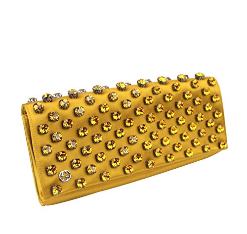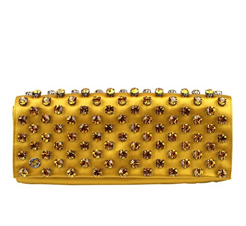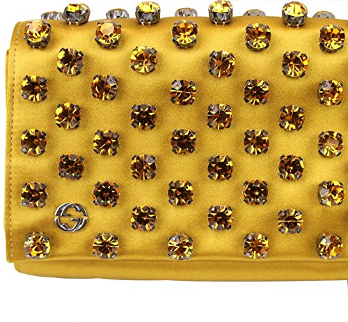 -. Title : Gucci Mustard Yellow Swarovski Crystals Broadway Satin Clutch 339239 7068