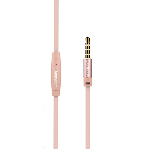 Mijiaer 이어폰 커널형 고음질 밀폐형 외부 노이즈 차단 마이크 부착 통화 가능 유선 플랫 케이블 M410 블랙&핑크 골드&골드 (핑크 골드)