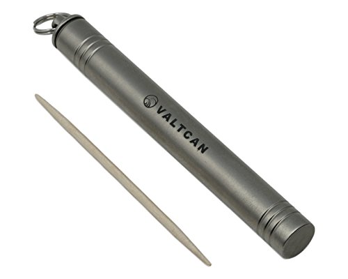 Studio : Valtcan Publisher : Valtcan Product Description Titanium toothpick holder - Never be without clean toothpicks again! Food get stuck in your teeth after every meal? Or know someone who does? A toothpick will fix the problem. But, don't you just hate it when restaurants do not have any toothpicks? Or when you are in the movies and snack on some popcorn or candy - where can you get a toothpick? Now you never need to be without one with this Valtcan Titanium Toothpick holder. New Valtcan Compact Titanium Toothpick holder that is sure to be a great conversation starter. Be the hero of your party at the end of a large meal when everyone is looking for a flovored toothpick. Full Titanium construction - Lifetime EDC. Designed to be carried with you All day every day. Toothpick holder is made with full titanium construction that you can carry every day without even knowing it. Titanium is lightweight, non corrosive, lighter and stronger than steel, durable and designed for EDC. Easily attaches to any keychain with precision drilled keyring hole. Can be used as a necklace as well. Designed with keyring hole to be used as leverage when opening - Just hold on to your keyring and twist the bottom half to open. 0