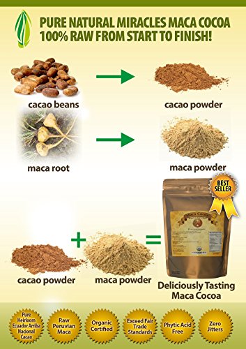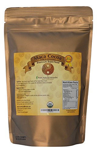 PURE NATURAL MIRACLES RAW ORGANIC MACA COCOA POWDER, BEST UNSWEETENED CACAO SMOOTHIE MIX, 100% USDA CERTIFIED