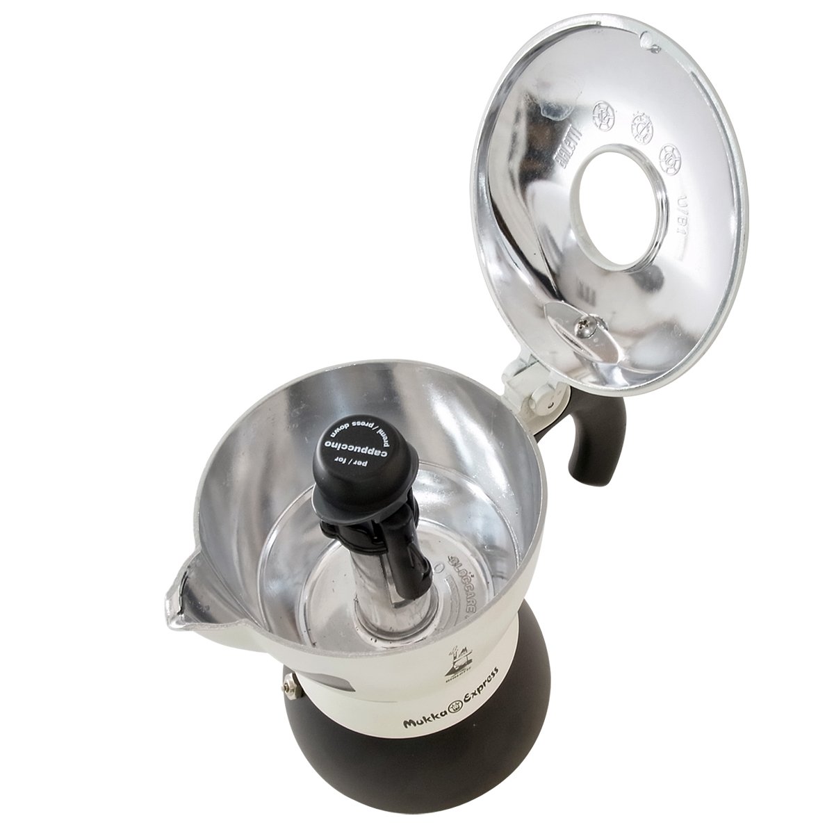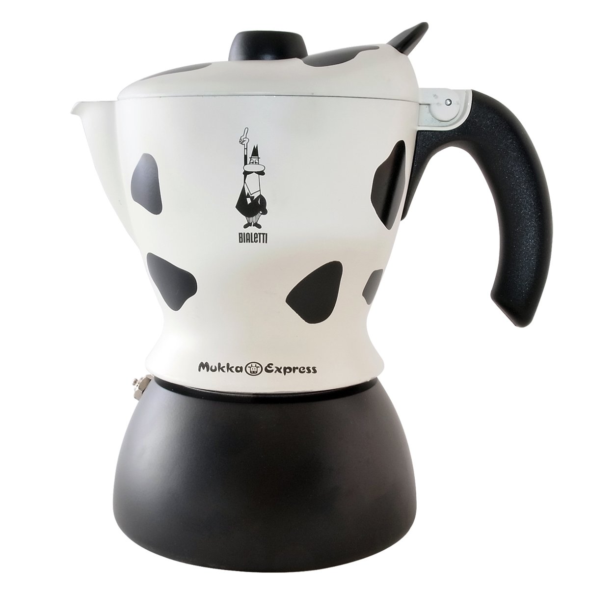 Bialetti Mukka Express 2-Cup Cow-Print Stovetop Cappuccino Maker Black and White