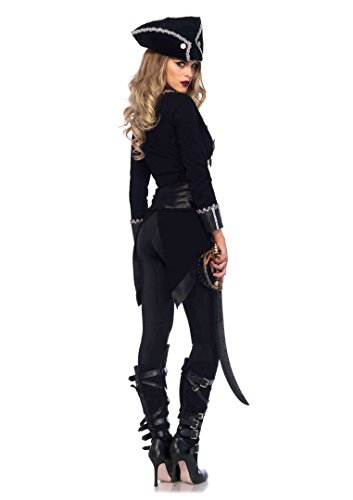 -. Feature : Seven seas beauty silver trimmed velvet coat with button accents / Satin waist sash / Leggings / Matching pirate hat / Great special occasion costume