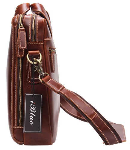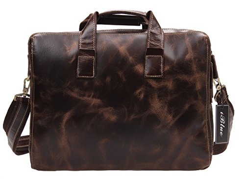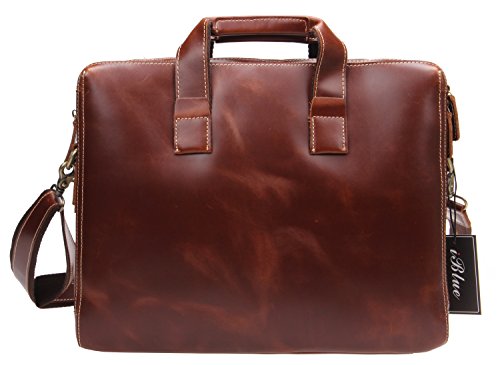 -. Title : Iblue Mens Real Genuine Leather Work Briefcase Business Shoulder Tote Bag 15.5 In #7167