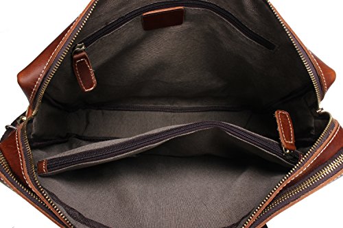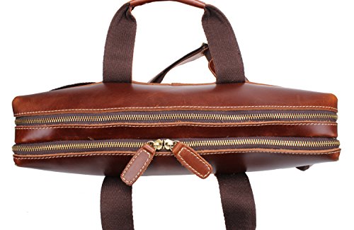 -. Feature : Soft top cow leather,from the leather quality to the stitching everything is done with quality and care. / Size approximately(without handle) : 15.5''L x 4''W x 12.5''H inches,the height of handle : 3 inch / Scientific and reasonable compartments, makes your goods lay in the bag systematically. / The carrying strap is adjustable, and you can tuck it inside the bag if you prefer to carry the bag by the leather carrying handle. / Ample room for your iPad,tablets, A4 size files, books and more(accommodate a 14 inch laptop).