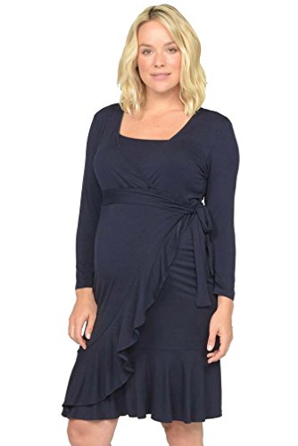 Very cute wrap dress with tie and ruffle detail. Features a front wrap over with side tie. A cross front neckline with under layer at bust to allow for discreet breastfeeding access. The skirt with ruffled hem sits just above the knee. Great throughout pregnancy & after for nursing baby. 95% viscose, 5% elastaneHand wash cold and hang dry.Feature