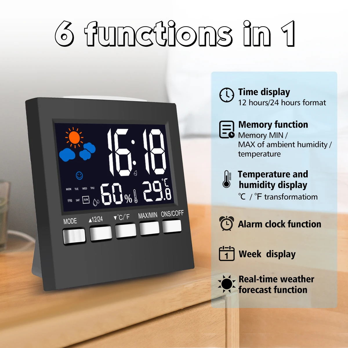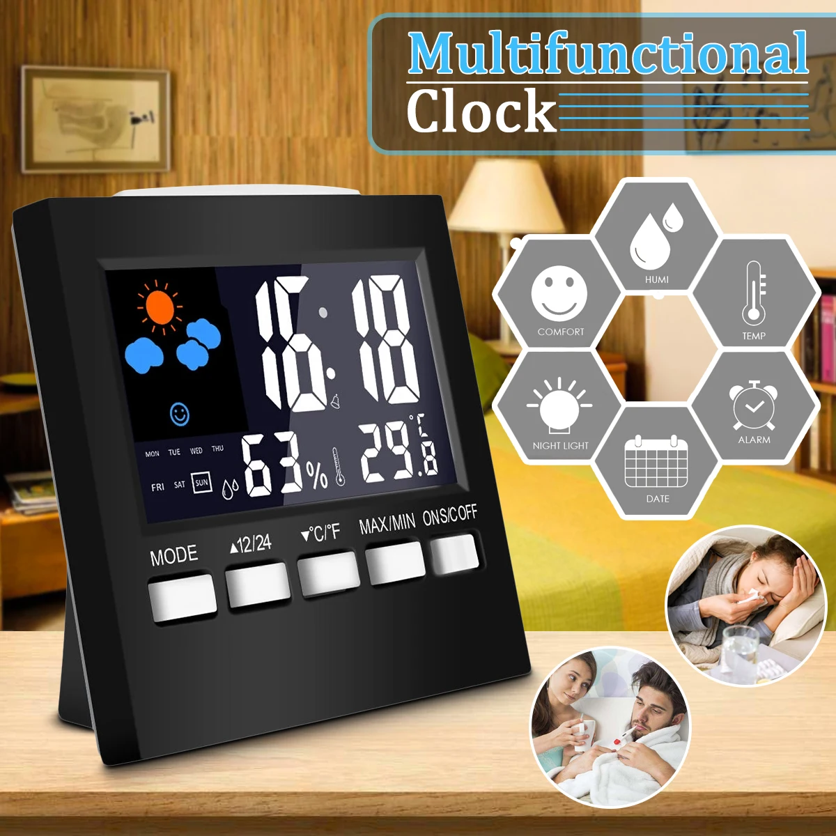 1 x Mutifunctional Temperature humidity alarm clock ( Not Included Battery )