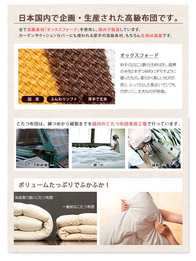 材質:天板-天然木化粧繊維板(楢柾目)、脚-天然木(ラバーウッド)、ウレタン塗装 こたつ布団(表地・裏地)-綿100%