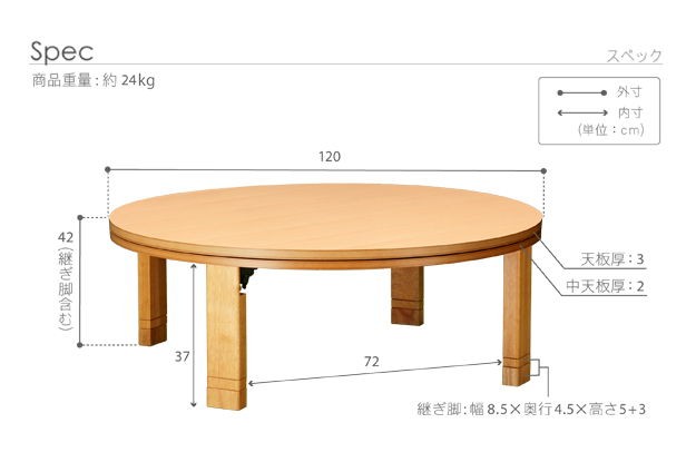 サイズ(cm):径120x高さ34/37/39/42cm・約24kg