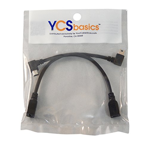YCS Basics 6 Inch USB 2.0 Mini B Female to Left and Right Angle Mini B Male Extension Cables