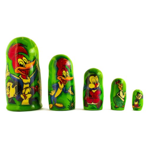 -. Title : 5 pcs/ 5.5" Woody Woodpecker Russian Nesting Dolls