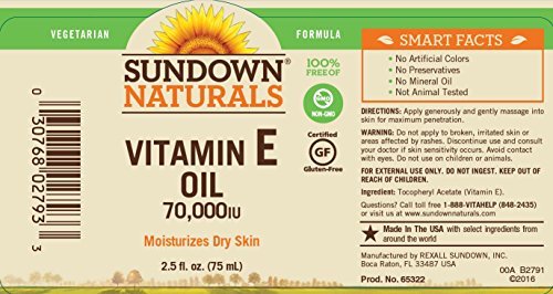 This is the correct description: Dedicated to your good health.Vitamin E OilSundown VitActive Ingredients:Tocopheryl Acetate (Vitamin E)Apply generously and gently; massage into skin for maximum penetration.Uses:This penetrating oil provides your skin with all the benefits of pure Vitamin E. It thoroughly moisturizes dry skin and helps minimize the appearance of fine lines and wrinkles. No mineral oil. Not animal tested.Do not apply to broken, irritated skin or areas affected by rashes. Discontinue use and consult your doctor if skin sensitivity occurs. Avoid contact with eyes. Do not use on children or animals. FOR EXTERNAL USE ONLY. DO NOT INGEST. KEEP OUT OF REACH OF CHILDREN.Feature