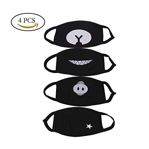 Teenitor 4 Pack Exo Unisex Cotton Blend Anti Dust Face Mouth Mask Black for Man Woman