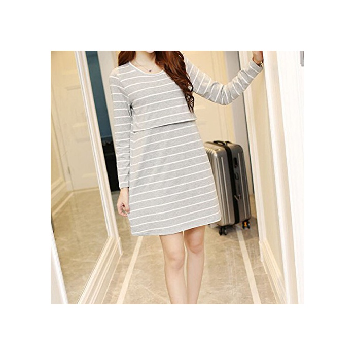 (《마시루》) Marshel 마타니티 원피스 튜닉 긴 소매 수유구 부착 산전산후 길게 쓸만한 임산부복 그레이 M