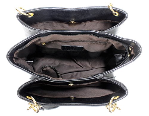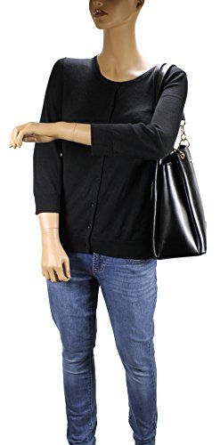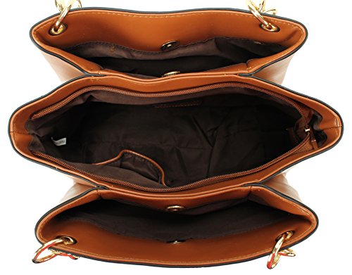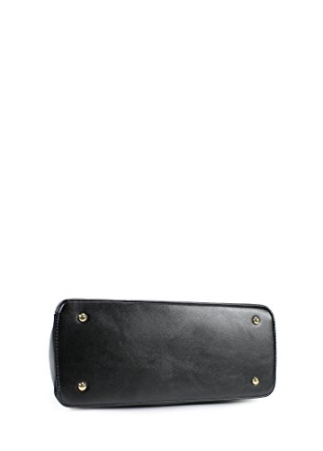 -. Feature : High quality synthetic leather with fabric lining. / Classic gold hardware. / Two top handles. / Interior cell phone pocket, multifunctional slip and zipper pocket. / Size: 13.7"x6.3"x11"