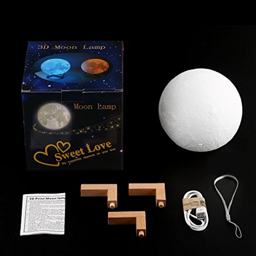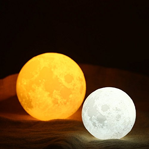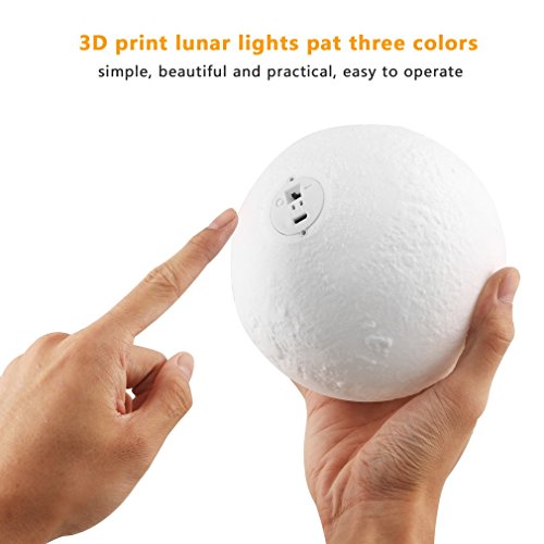 Muti-Changes Patterns: The Moon Lamp set three light model, respectively is pure white, warm white and seven color change. Through the touch control switch to change color to the moon. Every tip-tap, color change is as follows step: pure white, warm white, 7 color auto change(Red, Green, Blue, Yellow, Cyan, Purple, White), close.