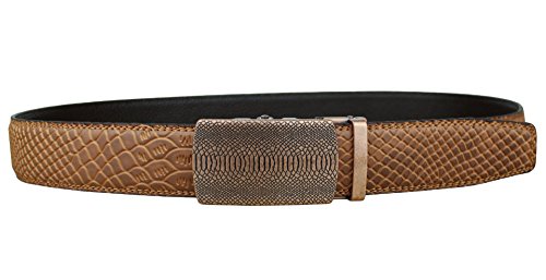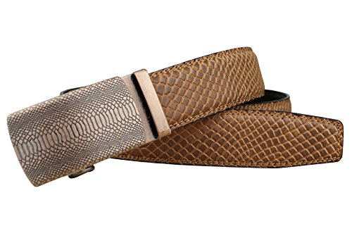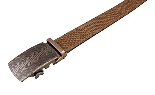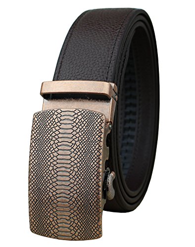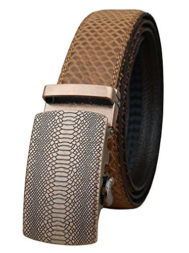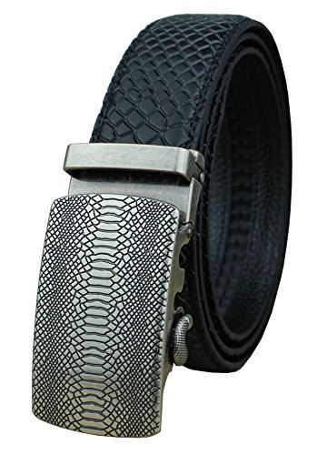 Auto Lock Buckle (Sliding Buckle), No holes in belt. Durable rubber ratchet.