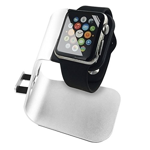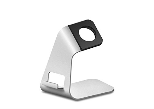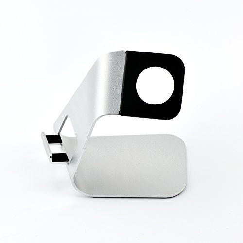 The iWatch / iPhone 6,6s,5, & 4 stand fit for all sizes and models of the new 2015 apple watch and iPhone, provide you much more convenience than ever. It supports the watch at a stable and comfortable condition. Perfect viewing angle: perfect angle for viewing. With the charged installed on this stand, you will never feel tired even after viewing for more than several hours. Fashionable and functional design: made of aluminum enhancing durability rectangular shape strengthen stability TPU dock avoids scratching the apple watch convenient cable cutout and insert provide enough slack to prevent the cable from overly bending weighed 2.04 Oz (68g) makes it portable and easily to carry silver and black color design makes it more elegant compatible with: all versions of the 2015 apple watch, 38mm and 42mm(original basic model / sport version / and edition models) and all versions of iPhone.Feature