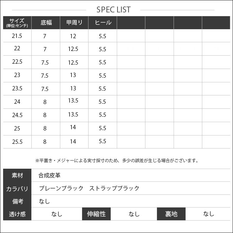 サイズ:21.5cm/22cm/22.5cm/23cm/23.5cm/24cm/24.5cm/25cm/25.5cm